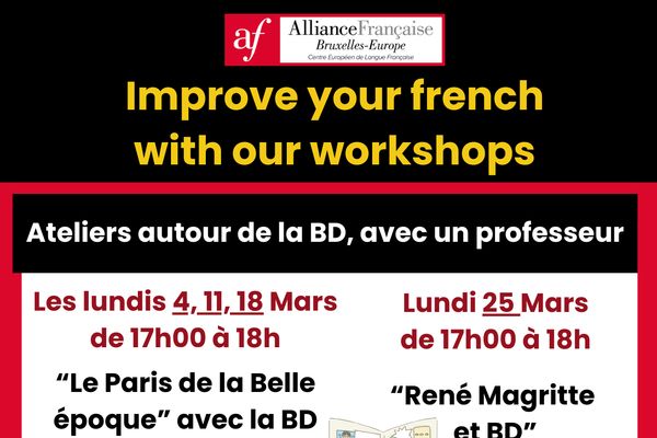 Ateliers autour du sujet de la Bande Dessinée, encadrés par un professeur de l'Alliance Française Bruxelles-Europe.