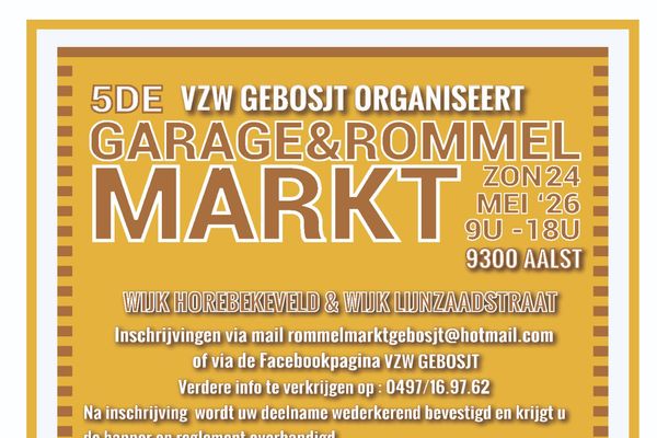 Op Zondag 24 mei 2026 organiseert Akv Vzw Gebosjt hun vijfde rommelmarkt / garageverkoop.